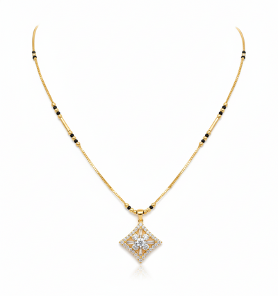 Minimalist Gold Plated Mangalsutra with Square Crystal Pendant | Anti-Tarnish Daily Wear Mangalsutra for Women